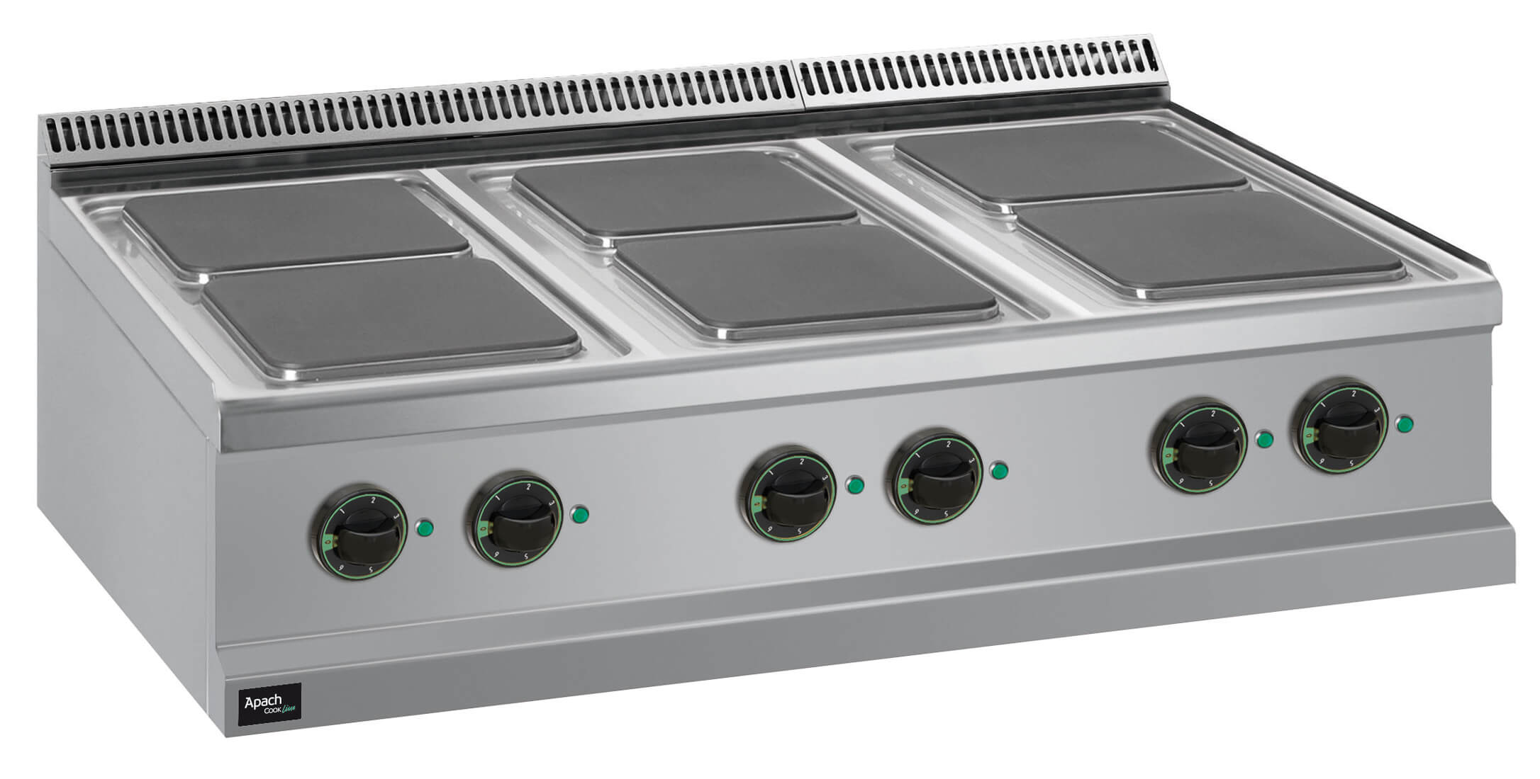 APACH 700 SERIES 6 HOTPLATES RANGE ELECTRIC APRE-117T of floor type is used for cooking various dishes in cooking plates in cafes, restaurants and canteens and other public catering establishments.