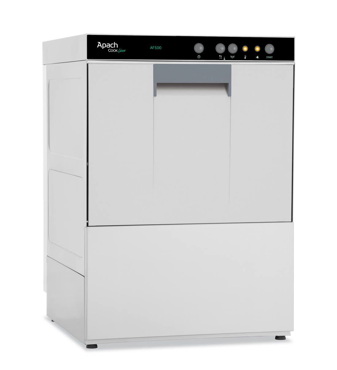 APACH FRONT-LOADING DISHWASHER AF501 (917971) is used for small and average public catering establishments. The presented model is recommended to connect to cold water. The height of the feed door is 345 mm. The machine is equipped with a double-wall door to reduce noise level and improve thermal insulation. The standard machine kit includes Thermostop function, the rinse aid dispenser, 2 baskets with the size of 500*500, 1 tray for flatwares.