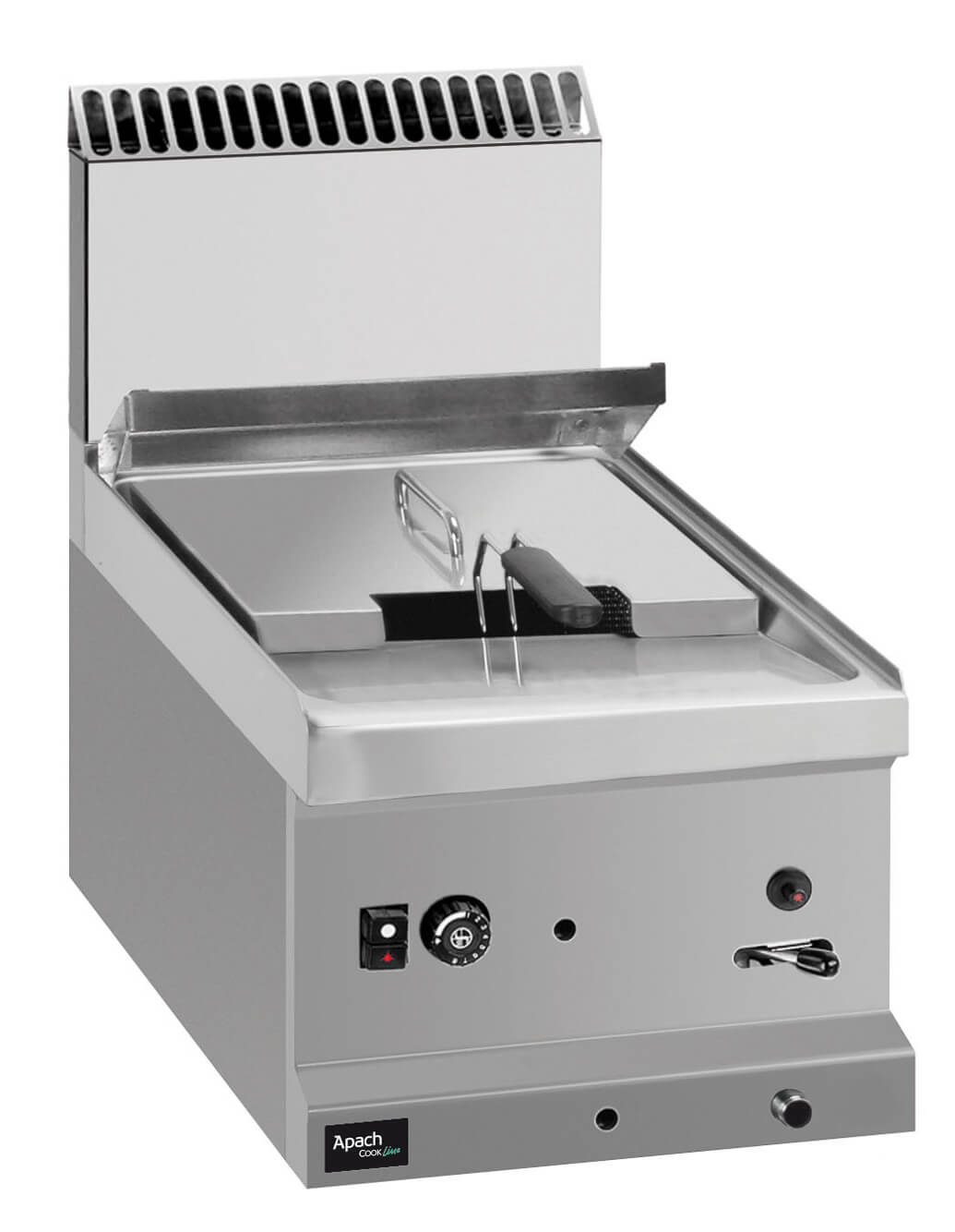 FRITÜÜR 700 SEERIA APACH APFG-47T – gaasifritüüri lauamudel 1 roostevabast toiduaineterasest 9-liitrise vanniga, arvestusega üks kasutatav fritüürimiskorv. Ühendatakse gaasijuhtmega, koos võimalusega lülitada ümber balloongaasitoitele. Kuumutamine on tagatud rõhtsete malmpõletitega, millel on elektriline süütemehhanism. Töötemperatuuri vahemik muutub vahemikus 90-190 °C. Seade on varustatud lihtsa elektromehaanilise juhtpaneeliga. Komplekti kuulub kroomitud terastraadist praadimiskorv ja roostevabast terasest kaas.