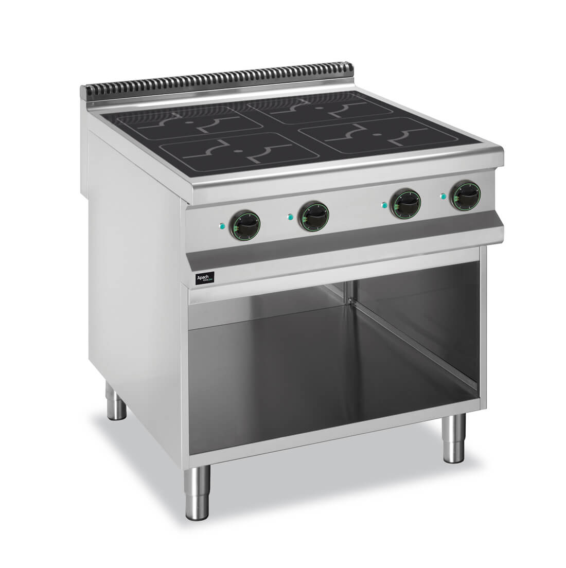 INDUKTSIOONPLIIT APACH APRI-89P (900 SEERIA) on mõeldud kala, liha, linnuliha ja muude toiduainete kuumtöötlemiseks. Pliidi seda mudelit saab kasutada köökides: nii eraldi kui ka koos teiste mudeliliini APACH soojuslike moodulitega. Induktsioonpliidil on 4 kuumaala, kumbki 6 võimsustasemega ja teisest sõltumatult juhitav. Iga ala suurim võimsus – 5 kW. Kuumaalade tööd saab juhtida pöördlülitiga. Pliit APACH APRI-89P on varustatud märgutulega, mis teavitab kuumaalade olukorrast. Tööpind ei kuumene, kui puudub kokkupuude nõuga. Kui kasutatavate nõude läbimõõt on nõutavast väiksem, kuumeneb keetmispind üksnes kokkupuutealal. Selline süsteem võimaldab elektrienergiat säästa. Induktsioonpliidi kere on valmistatud oksüdatsioonikindlast terasest. Tööpind on valmistatud klaaskeraamikast ja seetõttu on seda kerge puhastada. Tööpinna all asub avatud alus. Pliidi sel mudelil praeahi puudub. Induktsioonpliidi APACH APRI-89P põrandamudelil on reguleeritava kõrgusega jalad. Selle pliidi välismõõtmed: 800х900х850 mm. Elukutseliste induktsioonpliidi koguvõimsus on 20 kW. Pinge – 400 V