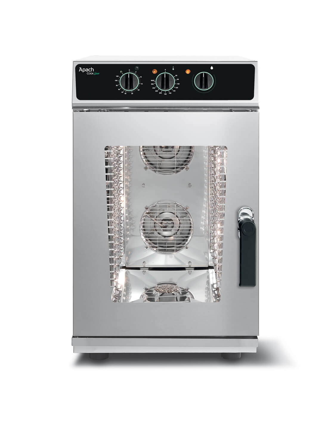 APACH kombi-auruahi AP10M COMPACT ühendab ühes seadmes erinevate kuumseadmete mitu funktsiooni. Seda saab kasutada erinevate toiduainete küpsetamiseks, aurutamiseks ja blanšeerimiseks. Seda saab kõige paremini kasutada toitlustusettevõtetes ja teistes toidutootmisettevõtetes. Parameetrid: – juhtimisviis: mehaaniline paneel; – aurustamise tüüp: pihusti; – 10 taset GN suurusele GN 1/1.