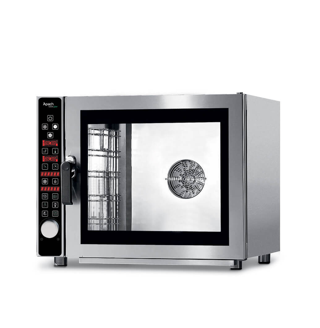 AURU-KOMBIAHI APACH AP5D GAS on ette nähtud toiduainete iga liiki kuumtöötlemiseks toitlustusettevõtetes. Selle abil saab praadida, keeta, küpsetada, aurutada, grillida, blanšeerida ja palju muud. Auru-kombiahi on varustatud elektroonilise juhtpaneeliga. 99 programmi, igaühe kohta 4 toiduvalmistamise järku. Kere on valmistatud roostevabast terasest. Uks on varustatud kahekordse karastatud klaasiga. Kambril, millel on mitmekülgsed juhikud nõudele GN1/1 või 600×400 mm küpsetusplaatidele, on ümardatud nurgad, mis hõlbustavad oluliselt puhastamist. Kambrit valgustab halogeenlamp. Suunda muutvate kolme kiirusega ventilaatorid tagavad kambri ühtlase kuumenemise kõigil tasandeil. Selle tulemusena kuumenevad kõik road kogu paksuses ning ei kõrbe ega kuiva isegi ülekoormatud ahjus. Talitlused: · temperatuurierinevuse mõõtmise toiming toidu sees ja välisküljel; · niiskuse seadistamise ja käsitsi reguleerimise talitlus; · auru väljatõmbe reguleerimise talitlus; · eelsoojendamise talitlus; · kambri jahutustalitlus. Auru-kombiahi on varustatud isetoimiva kambripuhastussüsteemiga (isetoimiv pesula). Mudeli välismõõtmed on 870x770x700 mm. Mahutab 5хGN 1/1 või 600х400 mm. Võimsus – 0,3 kW (el.) + 9,5 kW (gaas). Ühendatakse 220 V võrku. Komplektis: temperatuurisond ja 2xGN1/1.