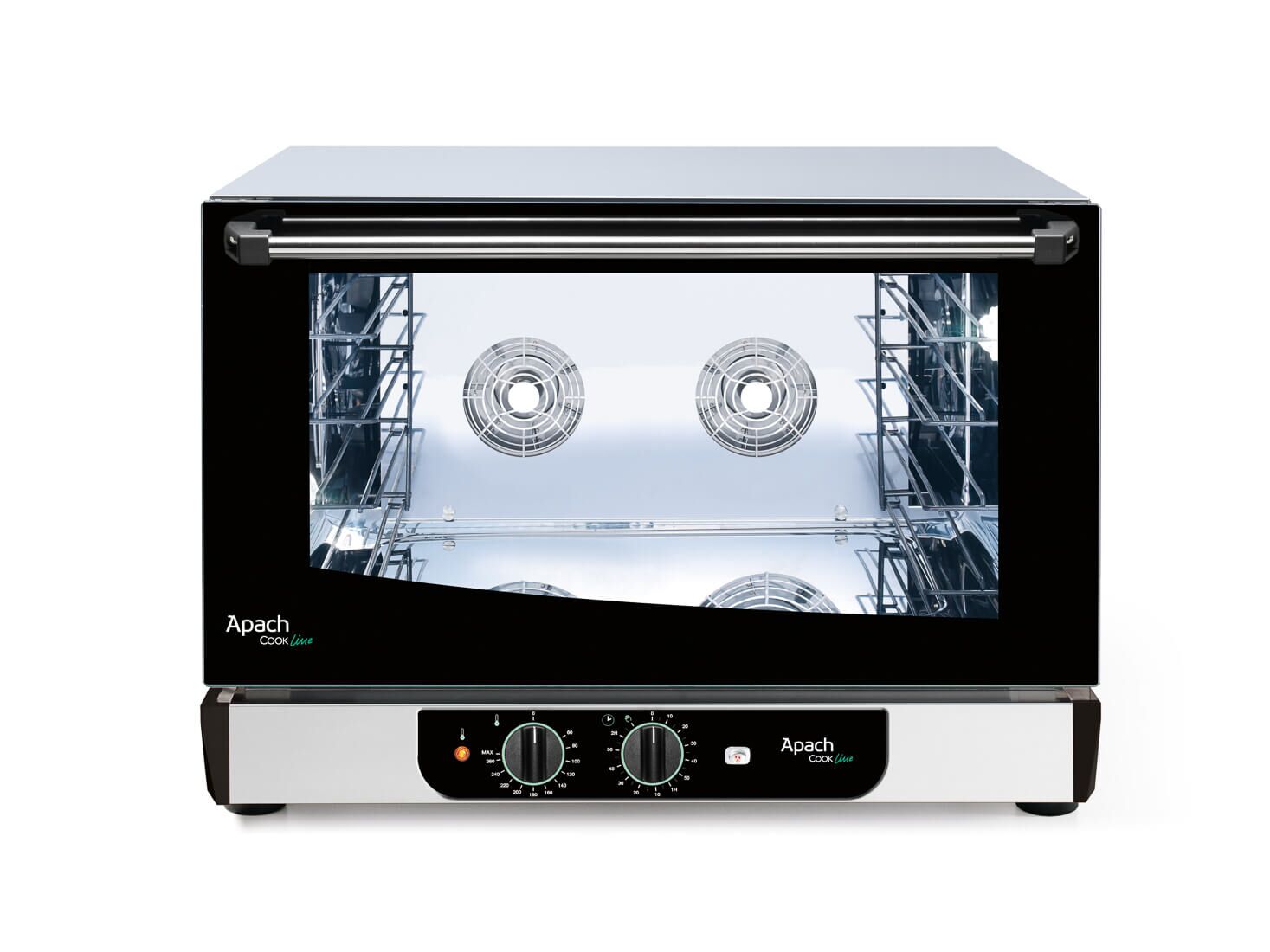 KONVEKTSIOONAHI APACH AD46MP ECO võimaldab saada kvaliteetseid pagari- või kondiitritooteid. Ahjus saab kuumutada ka valmistoitu, külmutatud tooteid või kerkekapis hoitud taignatoorikuid. Tänu paljudele kasutusvõimalustele on selliseid seadmeid võimalik kasutada ühiskondlikes toitlustusettevõtetes. Konvektsioonahju APACH AD46MP ECO peamised eelised: – kõrbema mineku puudumine ja ühtlane pruunistumine küpsetamisel tänu töökambri tuuluti töö poolt tagatud ühtlasele õhuringlusele; – olemas on auruga niisutamise talitlus, mida läheb vaja peamiselt pärmitainast toodete küpsetamisel (sellise toote maht suureneb ja pinnale moodustuv koorik võib lõhkeda; tänu küpsetusprotsessi alguses töökambrisse sisenevale aurule seda aga ei juhtu); – katkematu toiduvalmistamise võimalus; – säästev elektrienergia kulutamine. Konvektsioonahjul APACH AD46MP ECO on elektromehaaniline juhtimine. Auru tootmise viis – surujugapumbaga. Ahju kere on valmistatud oksüdatsioonikindlast terasest, ukse materjal on kahekordne karastatud klaas. Kambri valgustamiseks on ahju paigaldatud halogeenlamp. See konvektsioonahju mudel on varustatud termostaadi ja ajamõõtjaga. Ahju töötemperatuur on vahemikus 0 kuni 285 °C. Konvektsioonahi mahutab neli gastronorm nõud GN 1/1 või sama palju 600 x 400 mm küpsetusplaate (kaks on juba kaasas). Seadme poolt tarbitav võimsus – 6,2 kW. Ahju välismõõtmed – 750 х 650 х 560 mm. Nõutav toitepinge on 380/220 V.