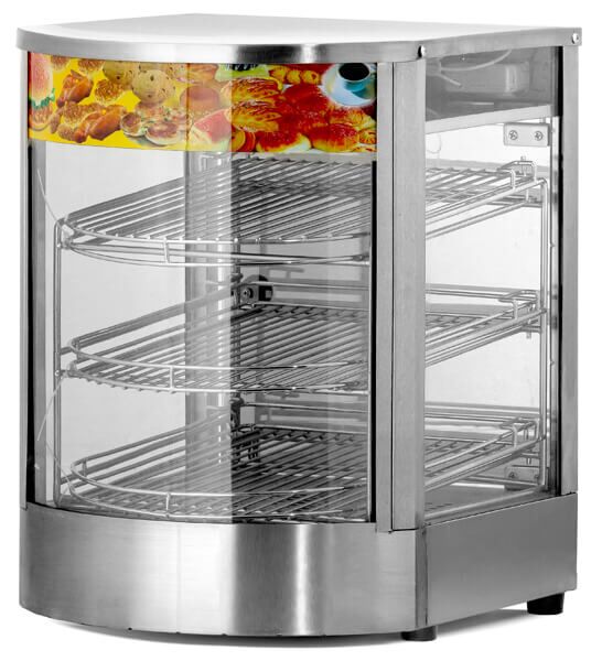 KUUMVITRIIN HURAKAN HKN-WD1 asetatakse lauale, et valmistatud roogi soojana esitleda. Sellised seadmed on päevakohased toitlustusettevõtete jaoks, kus enne lauale andmist on vajalik toitu lühiajaliselt kuumana hoida. See klaaskapi mudel on varustatud kolme võreriiuliga. Klaaskappi paigutatud toitude ligitõmbavamaks muutmiseks on olemas valgustid. Soe klaaskapp on valmistatud roostevabast terasest. Seadme välismõõdud on 350 x 425 x 500 mm. Selle klaaskapi töötemperatuurivahemik on 30-110 °C. Aparaadi poolt tarbitav võimsus – 0,85 kW. Toitepinge on 220 V.
