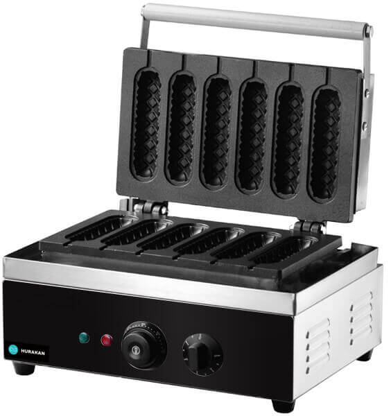 MAISI-HOTDOGI MASIN HURAKAN HKN-HCP6 eristub stiili ja läbimõeldud kujunduse poolest ning seda on väga mugav kasutada. Tööpind kuumeneb kiiresti ja pruunistab taina kuldse koorikuni. Samal ajal on võimalik küpsetada kuni kuut maisi-hotdogi.