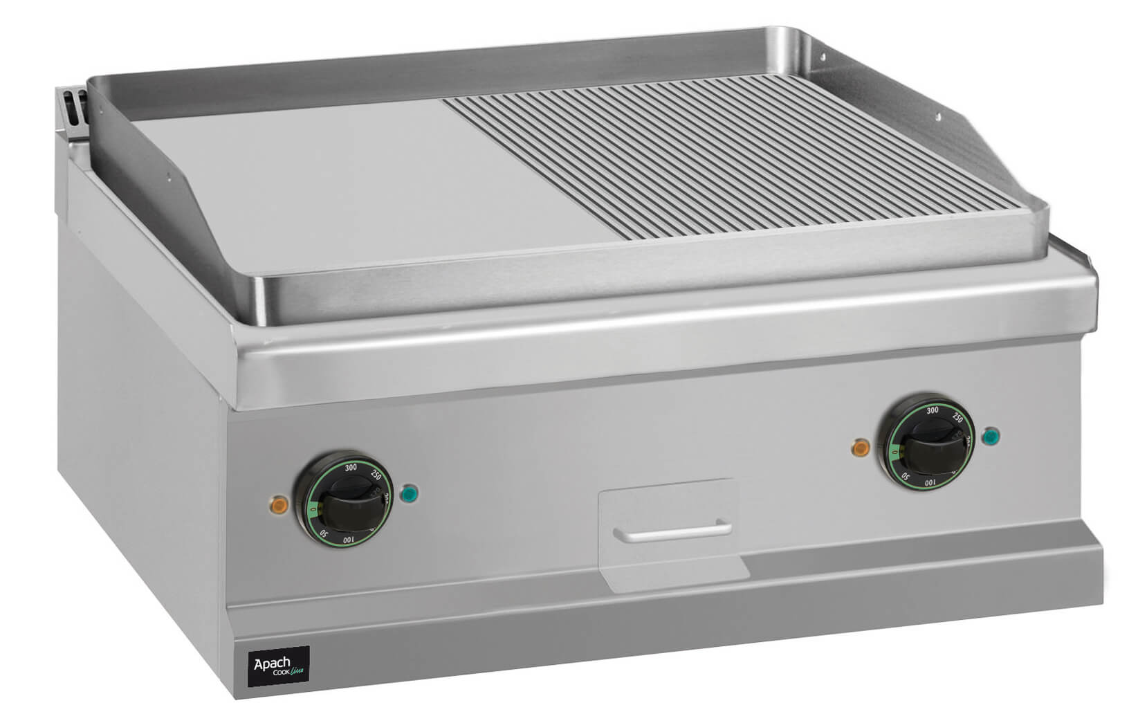 PLAATGRILL APACH APTE-77TLR (700 SEERIA) sileda ja rihvelpinnaga lauamudelit kasutatakse kõigis toitlustusettevõtetes erinevate toiduainete küpsetamiseks vahetult kuumutataval pinnal.