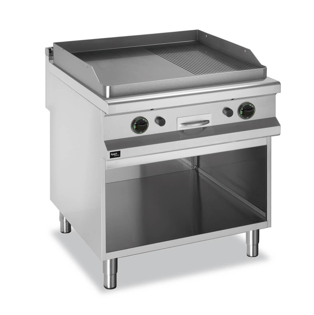 PLAATGRILL APACH APTG-89PLR võimaldab praadida toitlustusettevõtetes liha, kala, juurvilju ja teisi toiduaineid. Selle pannimudeli praadimispind asub avatud püstalusel. Lahtisel pannil on gaasiühendus. Süüte ja isetoimiva leegi püsivana hoidmise seadmega gaasipõletitel on suur käändude arv, tänu millele jaotub soojus töökausi põhjal ühtlaselt. LAHTINE PANN 900 SEERIA APACH APTG-89PLR erineb rasvakoguja ja äärise olemasolu poolest, ka on sel ümardatud servad – see kõik hõlbustab oluliselt puhastusprotsessi. Lahtise panni mõõdud: 800х900х850 mm. Selle võimsus on 16 kW. Ühendatud koetisega praadimispinna (2/3 sile + 1/3 rihveldatud) mõõdud on: 780х720 mm.
